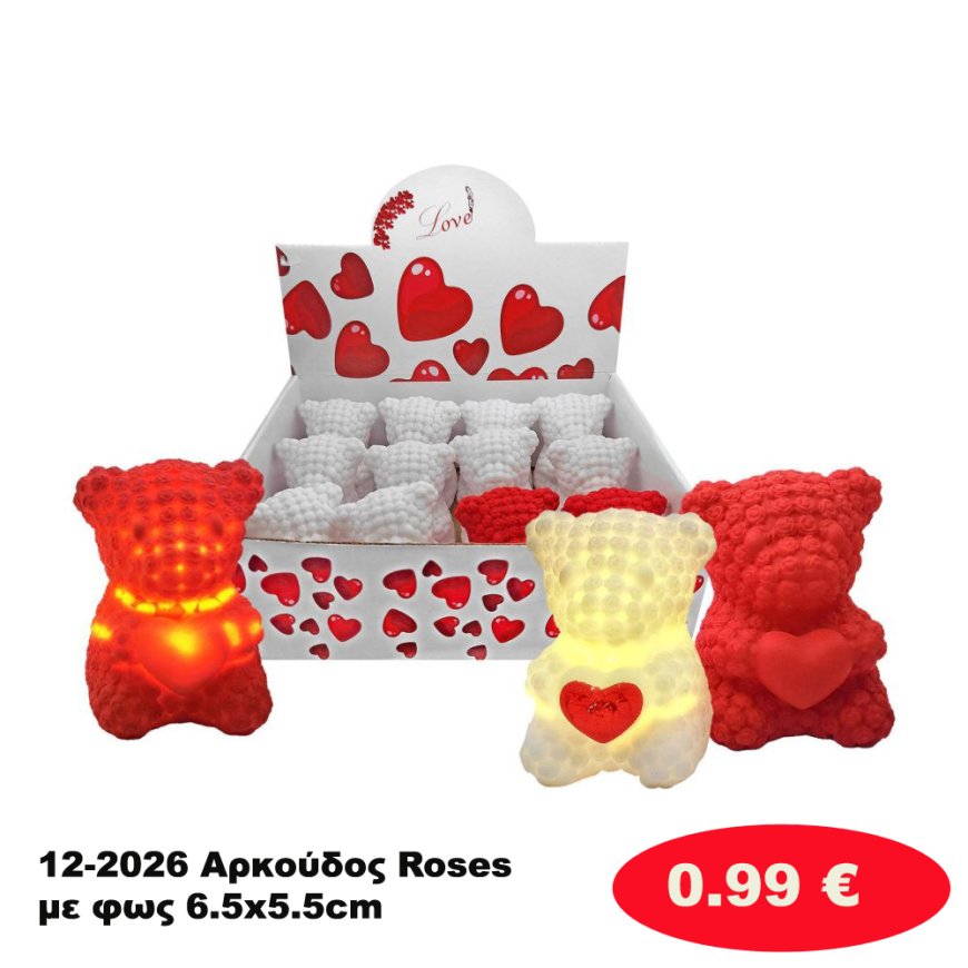 12-2026 Αρκούδος Roses με φως 6.5x5.5cm