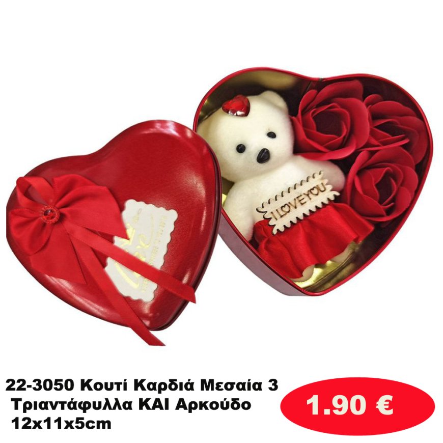 22-3050 Κουτί Καρδιά Μεσαία 3 Τριαντάφυλλα ΚΑΙ Αρκούδο 12x11x5cm