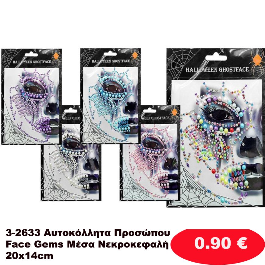 3-2633 Αυτοκόλλητα Προσώπου Face Gems Μέσα Νεκροκεφαλή 20x14cm