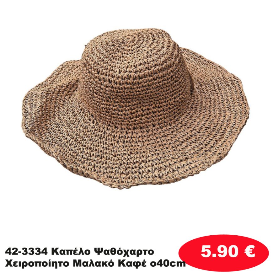 42-3334 Καπέλο Ψαθόχαρτο Χειροποίητο Μαλακό Καφέ o40cm