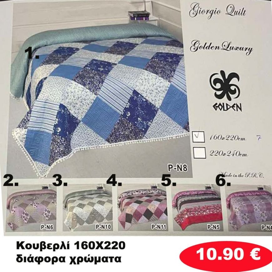 Κουβερλί 160X220 σε διάφορα χρώματα