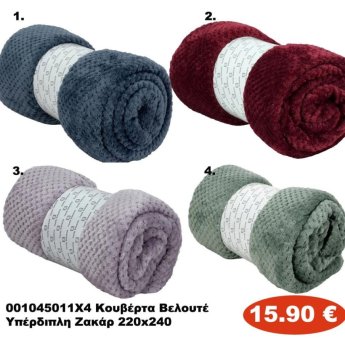 001045011 Βελουτέ κουβέρτα υπέρδιπλη σε διάφορα χρώματα