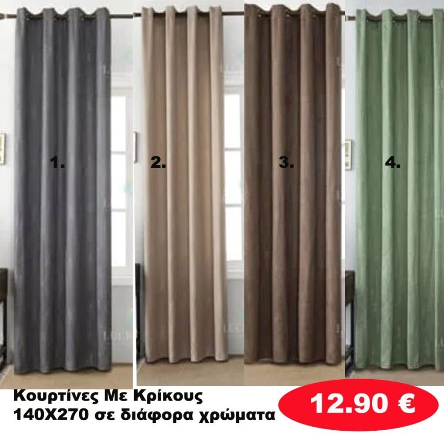 Κουρτίνες με κρίκους 140Χ270 σε διάφορα χρώματα
