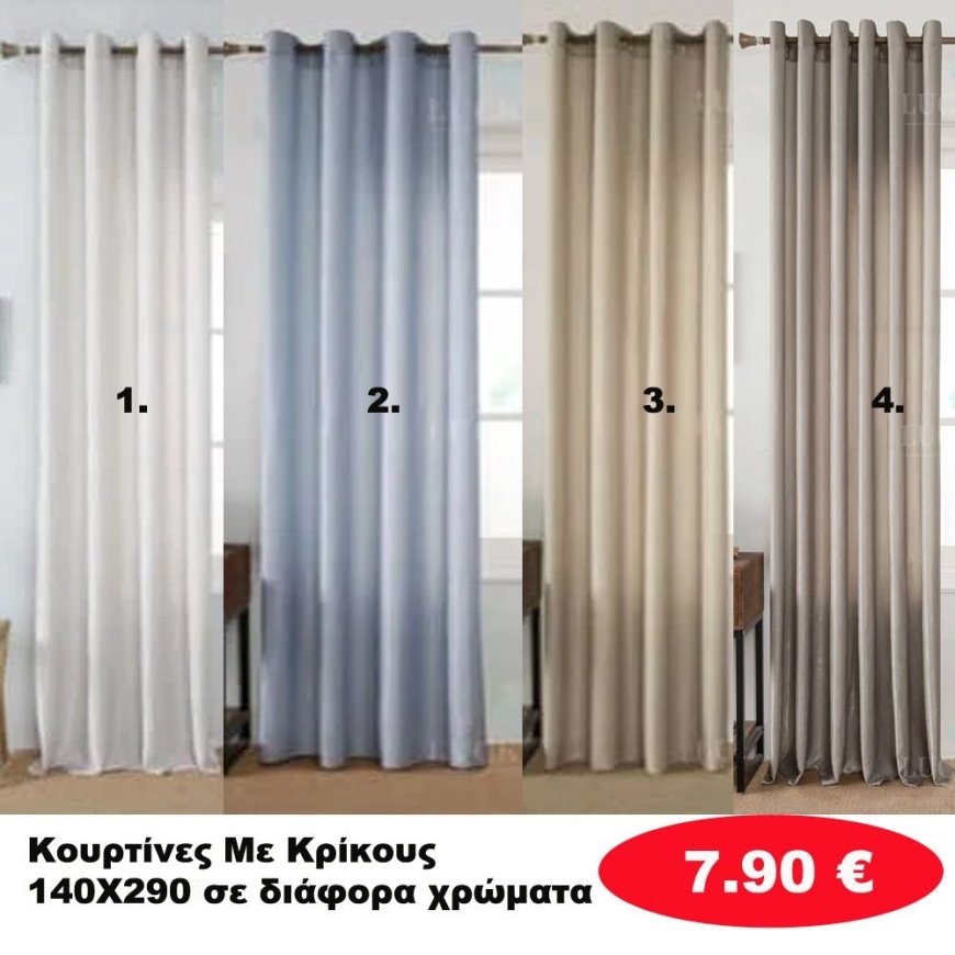 Κουρτίνες με κρίκους 140X290 σε διάφορα χρώματα