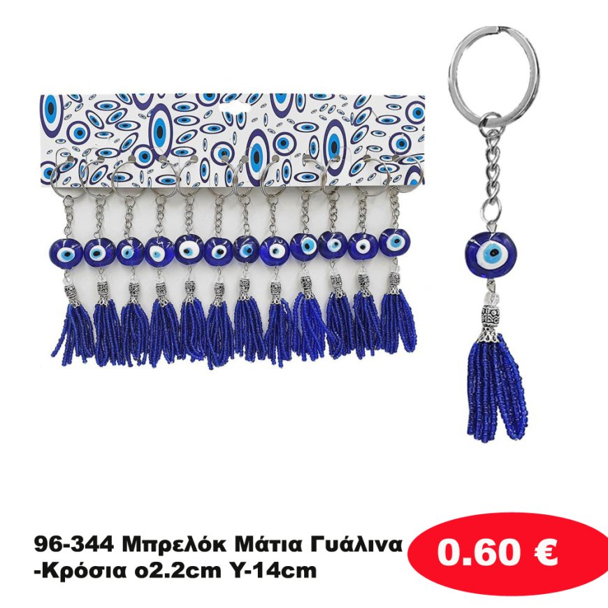 96-344 Μπρελόκ Μάτια Γυάλινα-Κρόσια o2.2cm Y-14cm