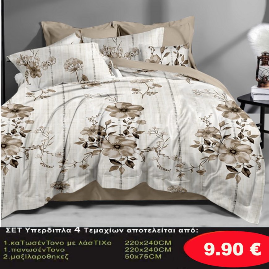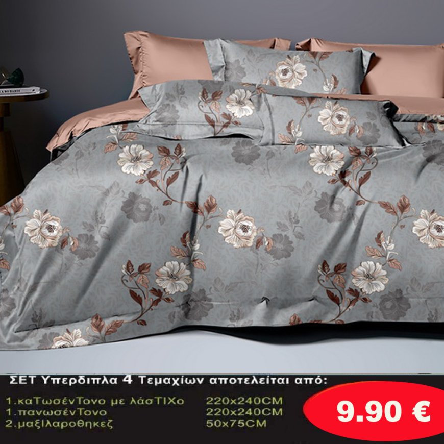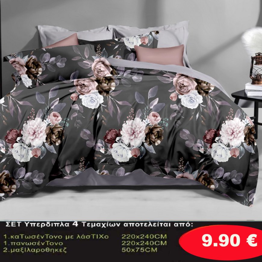 Σετ κρεβατοκάμαρας Υπέρδιπλα 4 τμχ. Κατωσέντονο 220Χ240-Πανωσέντονο 220Χ240 και 2 μαξιλαροθήκες 50Χ75 σε 4 υπέροχα χρώματα