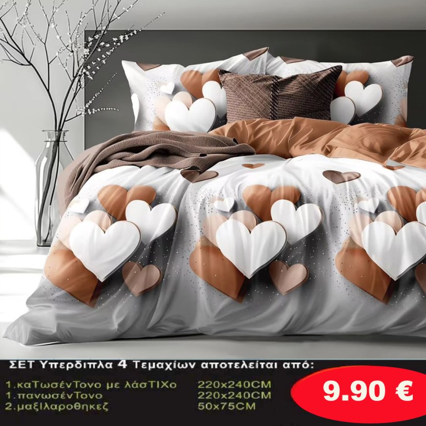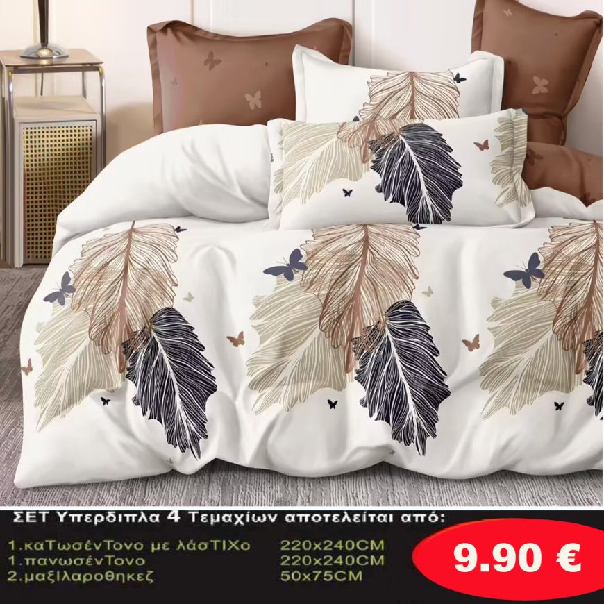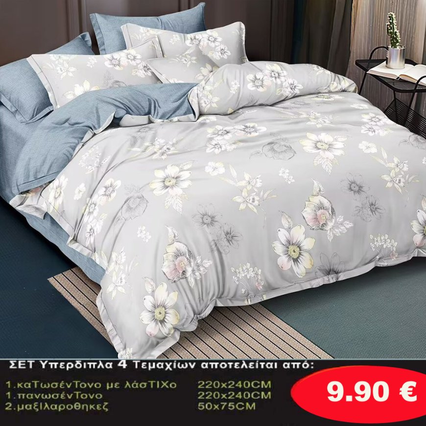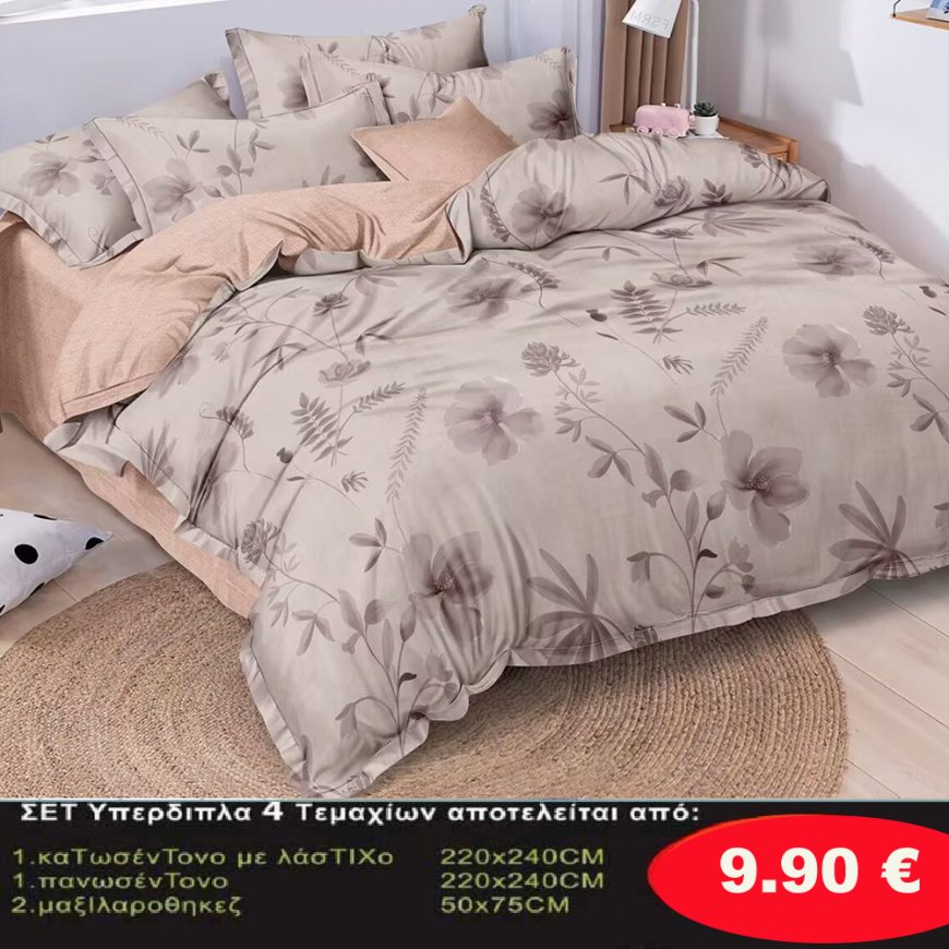 Σετ κρεβατοκάμαρας Υπέρδιπλα 4 τμχ. Κατωσέντονο 220Χ240-Πανωσέντονο 220Χ240 και 2 μαξιλαροθήκες 50Χ75 σε 4 υπέροχα χρώματα