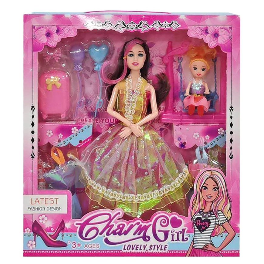 72-2098 Κούκλα 29cm ΚΑΙ Κουκλάκι σε Κούνια. με Αξεσουάρ 30x32x5cm