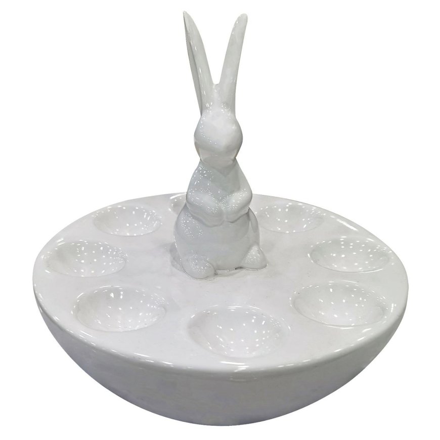 73-2213 Αυγοθήκη Κεραμική Λευκή Όρθιος Λαγός 23x22cm