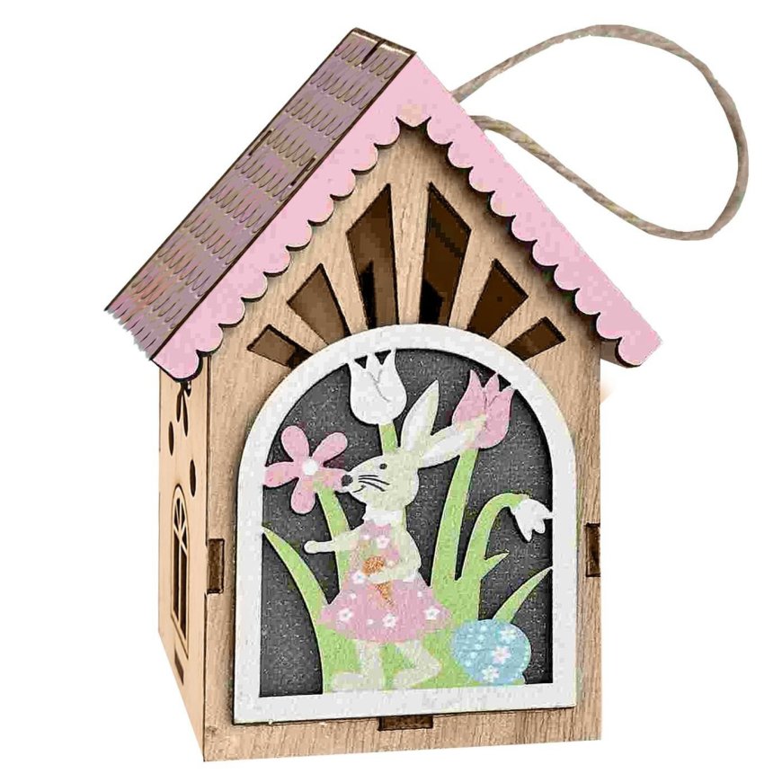 73-2177 Σπιτάκι Κρεμαστό ροζ Σκεπή και Λαγός 11x8x6cm