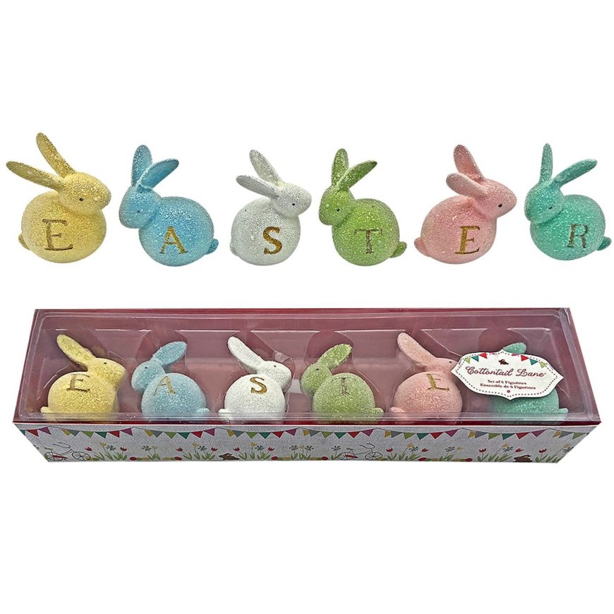 73-1877 Λαγοί Easter σετ-6τεμ Τεμ-9.5x7cm. Σύνολο-50x13x7cm