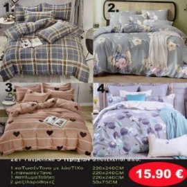 Σετ κρεβατοκάμαρας υπέρδιπλα 5 τμχ. 1-παπλωματοθήκη 220Χ240-1 κατωσέντονο με λάστιχο 220Χ240-1 πανωσέντονο 220Χ240 και 2 μαξιλαροθήκες 50Χ75 σε διάφορα χρώματα