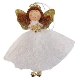 93-3789 Στολίδι αγγελούδι δαντέλα φόρεμα λευκό 18cm