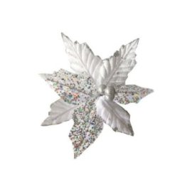 00001539 Χριστουγεννιάτικο ασημί-λευκό διακοσμητικό λουλούδι O20cm