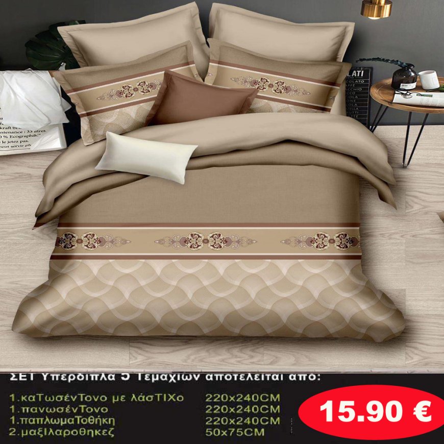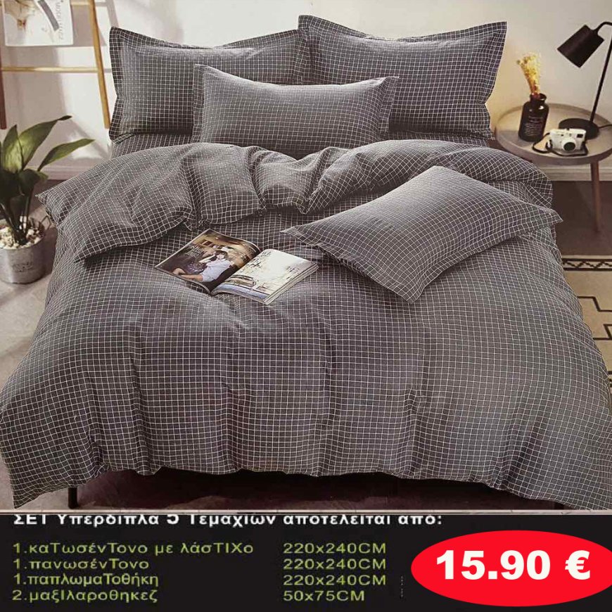 Σετ κρεβατοκάμαρας υπέρδιπλα 5 τμχ. 1-παπλωματοθήκη 220Χ240-1 κατωσέντονο με λάστιχο 220Χ240-1 πανωσέντονο 220Χ240 και 2 μαξιλαροθήκες 50Χ75 σε διάφορα χρώματα