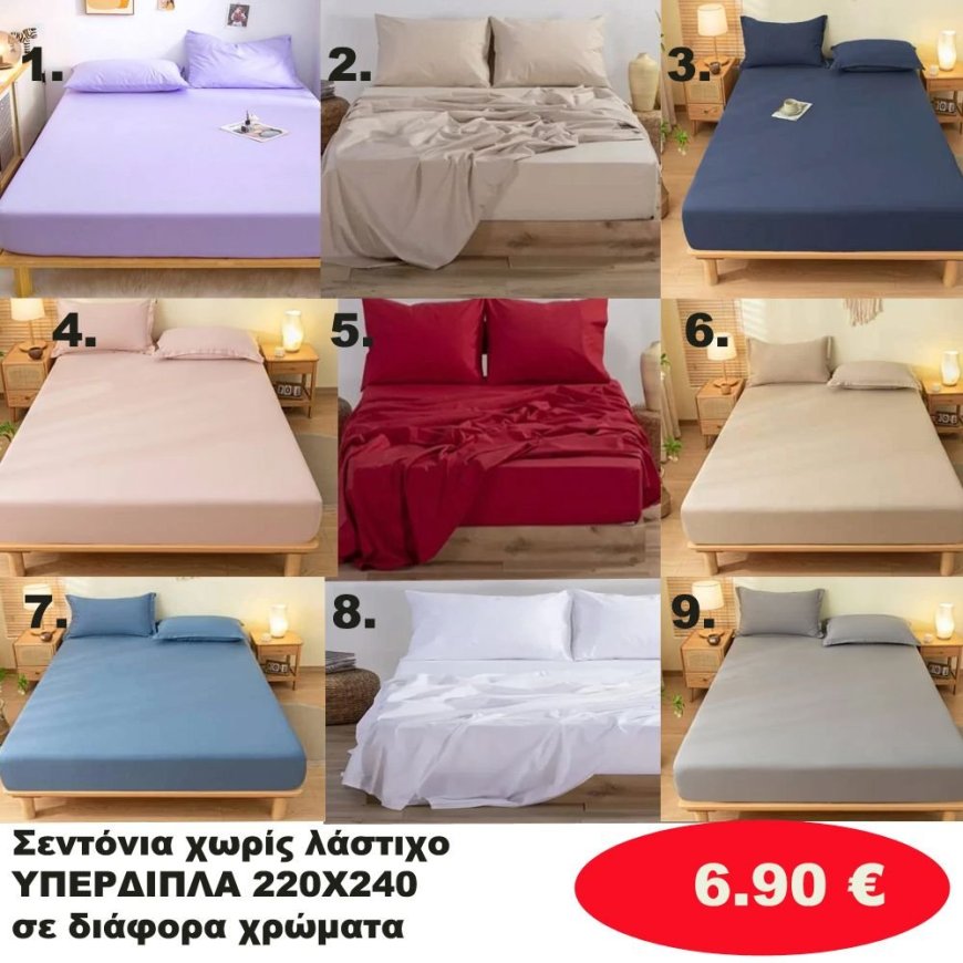 Σεντόνια χωρίς Λάστιχο ΥΠΕΡΔΙΠΛΑ 220Χ240 σε διάφορα χρώματα