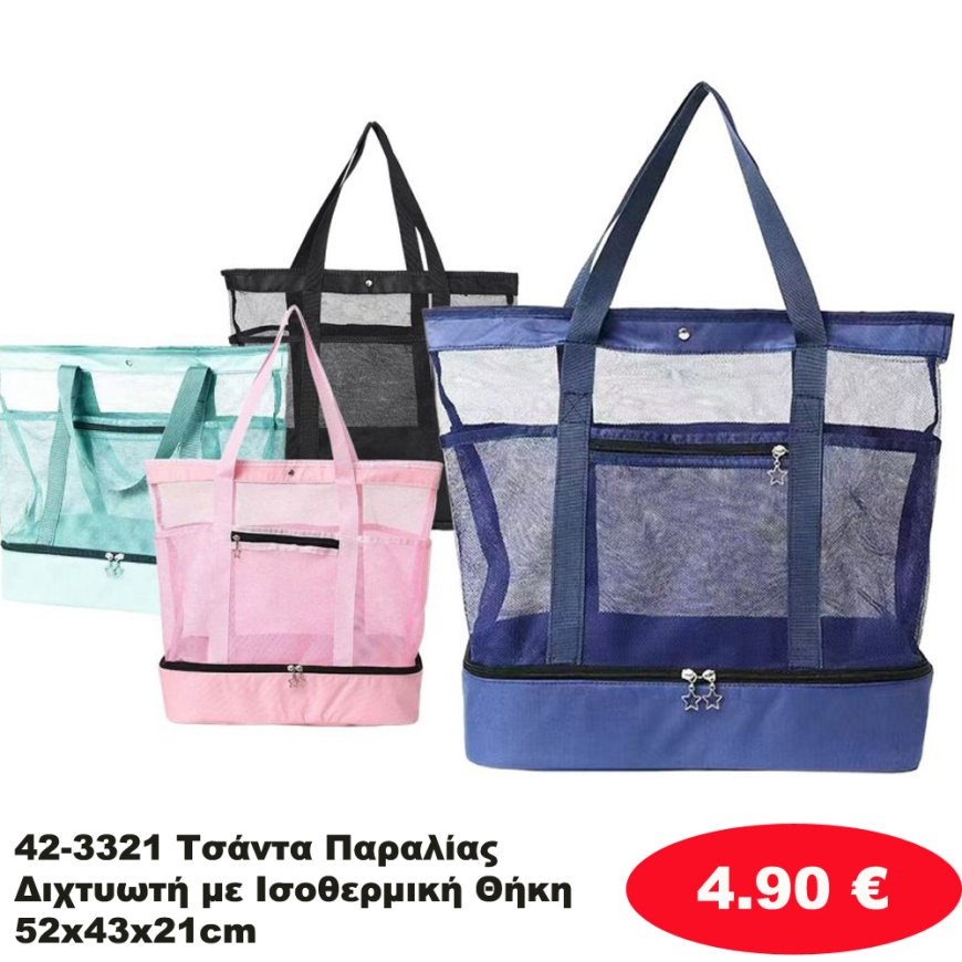 42-3321 Τσάντα Παραλίας Διχτυωτή με Ισοθερμική Θήκη 52x43x21cm