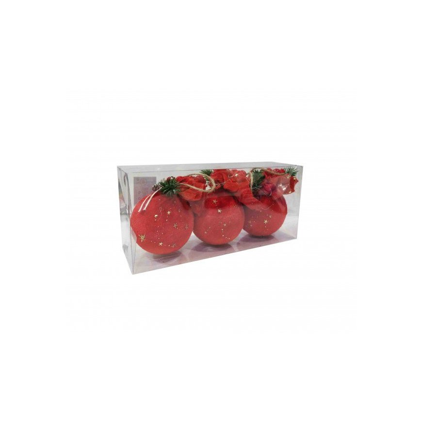 1198-36 ΧΡΙΣΤΟΥΓΕΝΝΙΑΤΙΚΕΣ ΜΠΑΛΕΣ ΠΟΥΓΚΙ ΚΟΚΚΙΝΕΣ 3ΤΜΧ 11CM