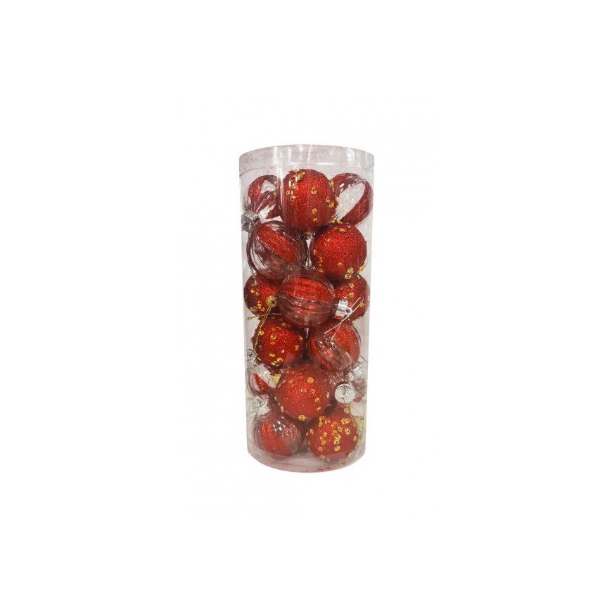 1343-12 ΧΡΙΣΤΟΥΓΙΕΝΝΙΑΤΙΚΕΣ ΜΠΑΛΕΣ ΚΟΚΚΙΝΕΣ KAI ΔΙΑΦΑΝΕΣ 24ΤΜΧ 7.5CM