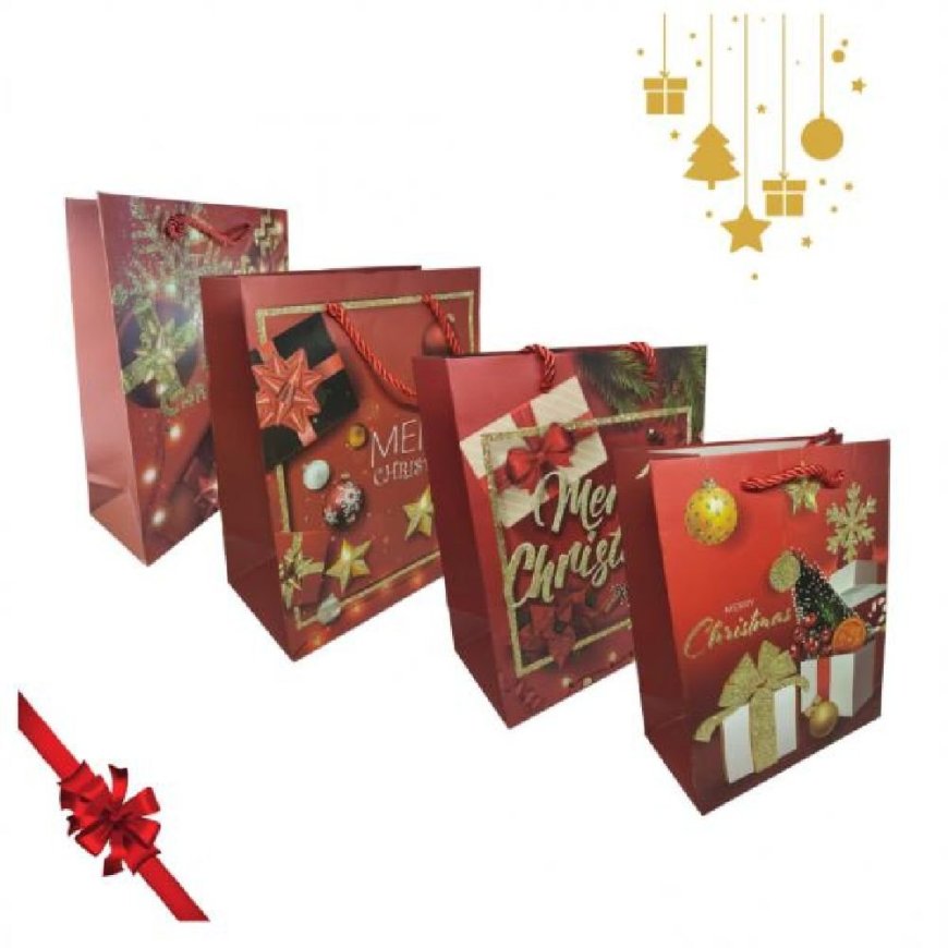 0001029 Σετ 12τμχ Χριστουγεννιάτικες Τσάντες Δώρων 18x23cm