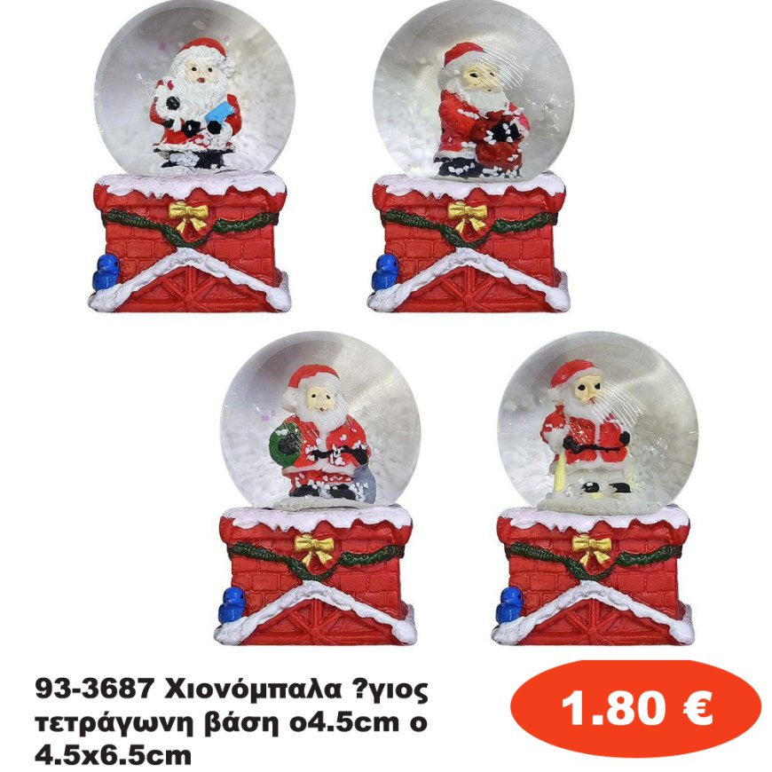 93-3687 Χιονόμπαλα ʼγιος τετράγωνη βάση o4.5cm o4.5x6.5cm