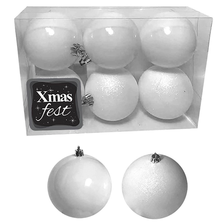 93-2522 Μπάλες λευκές shiny KAI glitter 6τεμ φ7 Φ7cm