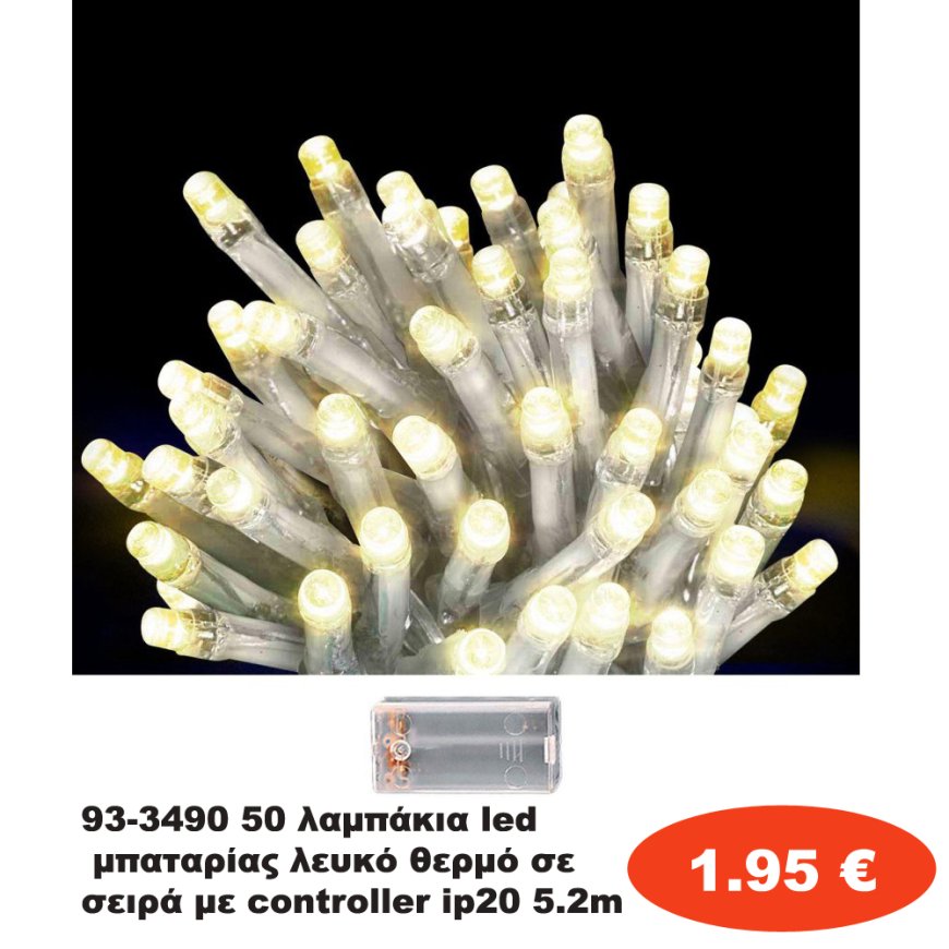 93-3490 50 λαμπάκια led μπαταρίας λευκό θερμό σε σειρά με controller ip20 5.2m