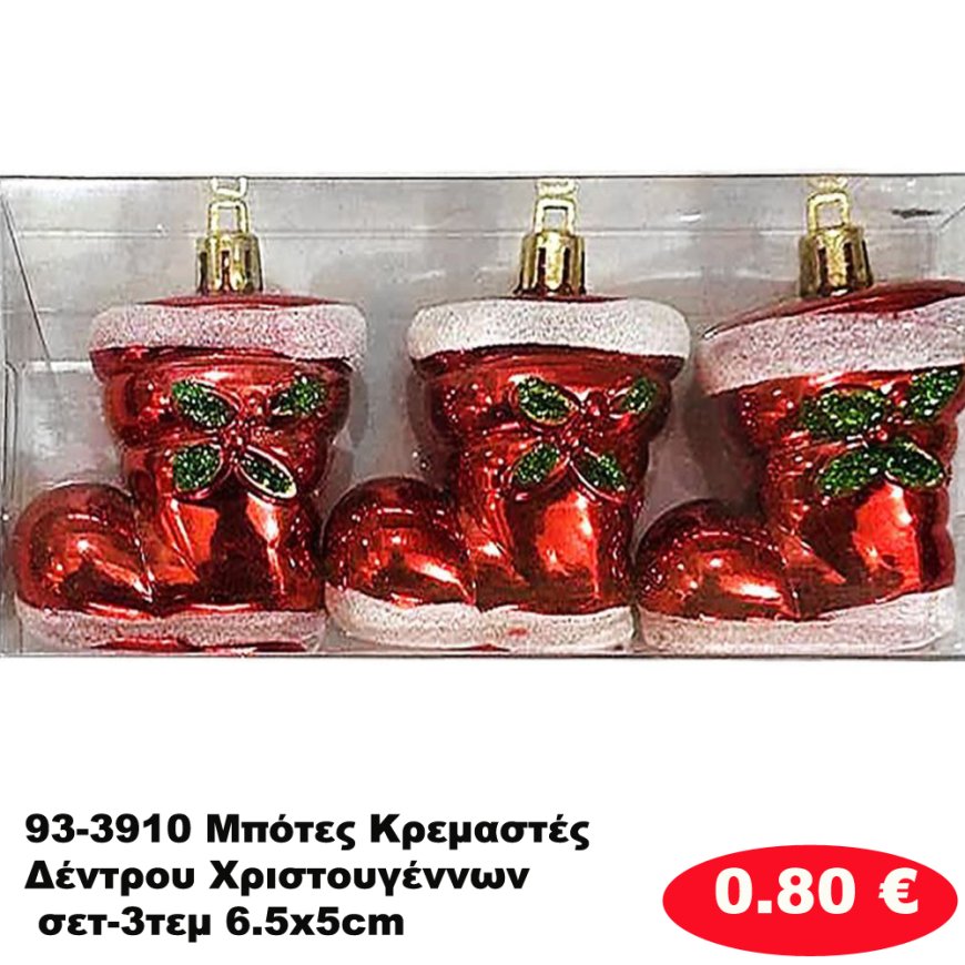 93-3910 Μπότες Κρεμαστές Δέντρου Χριστουγέννων σετ-3τεμ 6.5x5cm