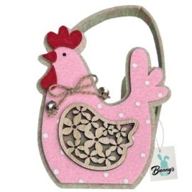73-2176 Καλάθι Τσόχινο με ροζ Ξύλινη Κότα με Καμπανάκι 19x11x7cm