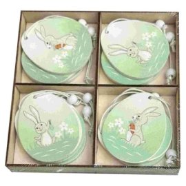 73-2185 Αυγα Ξύλινα Κρεμαστά Πράσινα με Λαγό σετ-12τεμ Ξύλινο κουτί-13x13cm