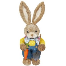 73-2162 Λαγός Όρθιος Ψάθινος Μπλε Παντελόνι Κρατάει Φτυάρι Καρότο 33x13x10cm