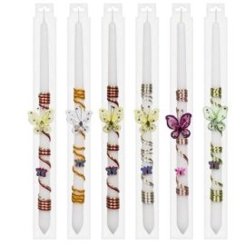 73-1182 Λαμπάδα Λευκή Κορδόνι-Πεταλούδα 40cm