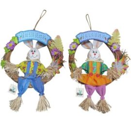 73-380 Στεφάνι με Αχυρένιο Λαγός φ30 Φ30cm -κούκλα 40cm-