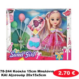 78-244 Κούκλα 15cm Μπαλόνια ΚΑΙ Αξεσουάρ 20x15x5cm