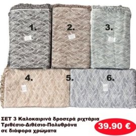 Σετ 3 καλοκαιρινά δροσερά Ριχτάρια για τριθέσιο-Διθέσιο και Πολυθρόνα σε διάφορα χρώματα