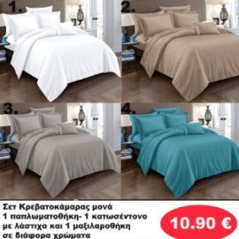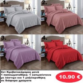 ΣΕΤ Κρεβατοκάμαρας ΜΟΝΑ -Σεντόνι με λάστιχο-Παπλωματοθήκη-Μαξιλαροθήκη σε διάφορα χρώματα