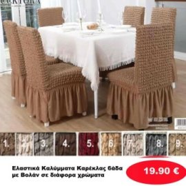ΣΕΤ 6 Ελαστικά Καλύμματα Καρέκλας με Βολάν σε διάφορα χρώματα