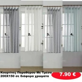 Κουρτίνες με Τρέσα ΠΑΡΑΘΥΡΟΥ 200Χ150 σε διάφορα χρώματα