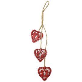 00001163 Κόκκινο μεταλλικό κρεμαστό Χριστουγεννιάτικο στολίδι καρδούλα