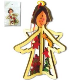 00001055 Ξύλινο τρισδιάστατο κρεμαστό Χριστουγεννιάτικο στολίδι αγγελάκι 10.5cm