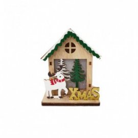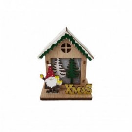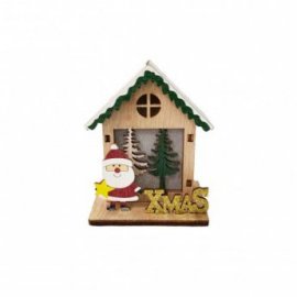 1178-18 ΧΡΙΣΤΟΥΓΙΕΝΝΙΑΤΙΚΟ ΞΥΛΙΝΟ ΔΙΑΚΟΣΜΗΤΙΚΟ ΣΠΙΤΑΚΙ ΜΕ ΦΩΣ 9.5Χ7.5X5.5CM