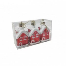 1178-72 ΧΡΙΣΤΟΥΓΕΝΝΙΑΤΙΚΑ ΣΤΟΛΙΔΙΑ ΣΠΙΤΑΚΙΑ ΧΙΟΝΙΣΜΕΝΑ ΚΟΚΚΙΝΑ 3ΤΜΧ 6Χ5.5CM