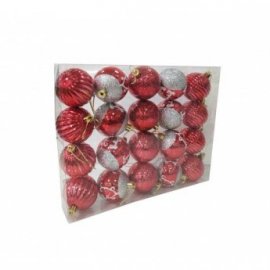 1178-71 ΧΡΙΣΤΟΥΓΕΝΝΙΑΤΙΚΕΣ ΜΠΑΛΕΣ ΚΟΚΚΙΝΟ-ΑΣΗΜΙ 4ΤΜΧ 9CM