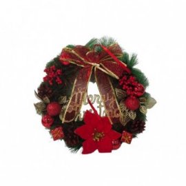 1178-70 ΧΡΙΣΤΟΥΓΙΕΝΝΙΑΤΙΚΟ ΣΤΕΦΑΝΙ MERRY CHRISTMAS ΜE ΚΟΚΙΝΟ ΦΙΟΓΚΟ 30CM
