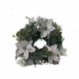 1178-59 ΧΡΙΣΤΟΥΓΙΕΝΝΙΑΤΙΚΟ ΣΤΕΦΑΝΙ ΜΕ ΛΕΥΚΑ BERRIES ΚΑΙ ΛΕΥΚΑ ΛΟΥΛΟΥΔΙΑ 28CM