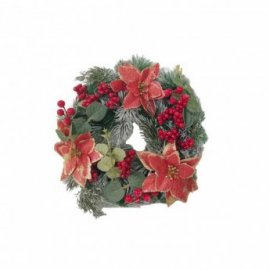 1178-58 ΧΡΙΣΤΟΥΓΙΕΝΝΙΑΤΙΚ ΣΤΕΦΑΝΙ ΜΕ ΚΟΚΚΙΝΑ ΛΟΥΛΟΥΔΙΑ ΚΑΙ ΚΟΚΚΙΝΑ BERRIES 28CM