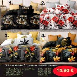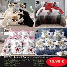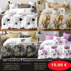 Σετ κρεβατοκάμαρας Υπέρδιπλα 4 τμχ. Κατωσέντονο 220Χ240-Πανωσέντονο 220Χ240 και 2 μαξιλαροθήκες 50Χ70 σε 4 υπέροχα σχέδια