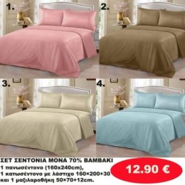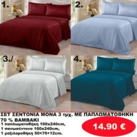 Σετ κρεβατοκάμαρας μονά 1 τμχ. 1 κατωσέντονο με λάστιχο 160Χ240-1 πανωσέντονο 160Χ240 και 1 μαξιλαροθήκη 50Χ70 σε διάφορα χρώματα