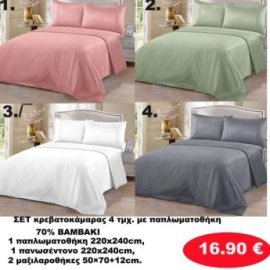 ΣΕΤ κρεβατοκάμαρας 4 τμχ. 1 σεντόνι με λάστιχο 180Χ200 1 πανωσέντονο 220Χ250 και 2 μαξιλαροθήκες 50Χ70 σε διάφορα χρώματα