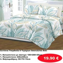 ΣΕΤ Σεντόνια ΥΠΕΡΔΙΠΛΑ 6 τμχ. -1 Κατωσέντονο με λάστιχο-1 πανωσέντονο -και 4 μαξιλαροθήκες